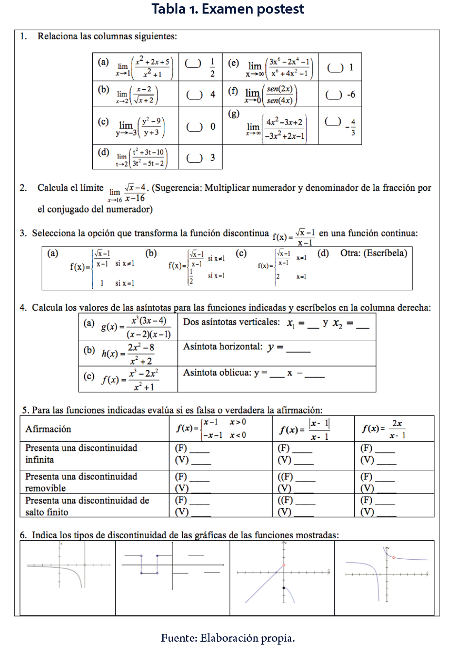 El análisis de la EC primero se centró en las respuestas del examen postest (Tabla 1) que más aportan a la discusión del tema; se hizo una exploración detallada en la que se pretende evidenciar el proceso cognitivo que el alumno siguió para solucionar el examen, reflejado en su aprendizaje, y segundo, para que los alumnos hicieran una descripción verbal de los conceptos matemáticos tratados en el estudio: Límite, asíntotas y continuidad.