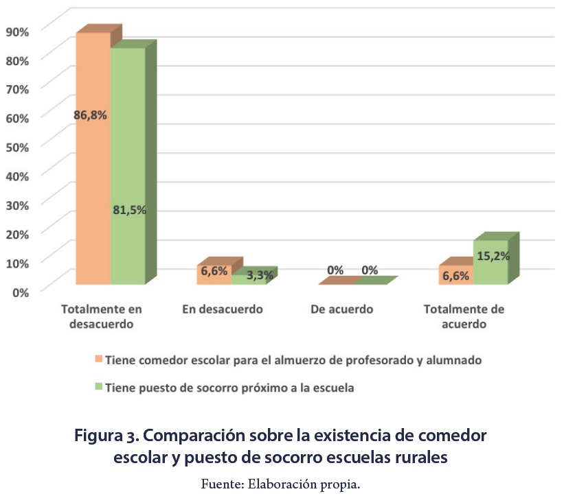 Figura 3. Comparación sobre la existencia de comedor escolar y puesto de socorro escuelas rurales