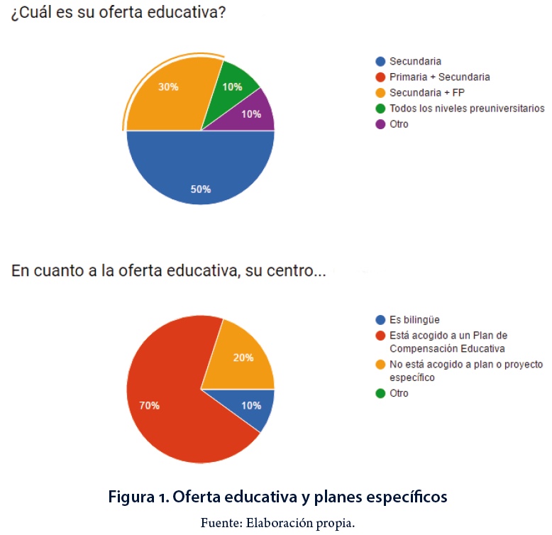 Además, aunque claramente desequilibrada, la existencia de encuestados de centros públicos (80%) y concertados2 (20%) abría la puerta al análisis comparado; no obstante, la heterogeneidad en cuanto a su oferta educativa (4 categorías, desde sólo Educación Secundaria Obligatoria (ESO) hasta incluir todos los niveles preuniversitarios) invita a la reflexión sobre cómo simplificar un análisis cuyo rango de edad estudiantil es tan amplio, y cuyos condicionantes psicopedagógicos son tan cambiantes (especialmente desde primaria a bachillerato y formación profesional).