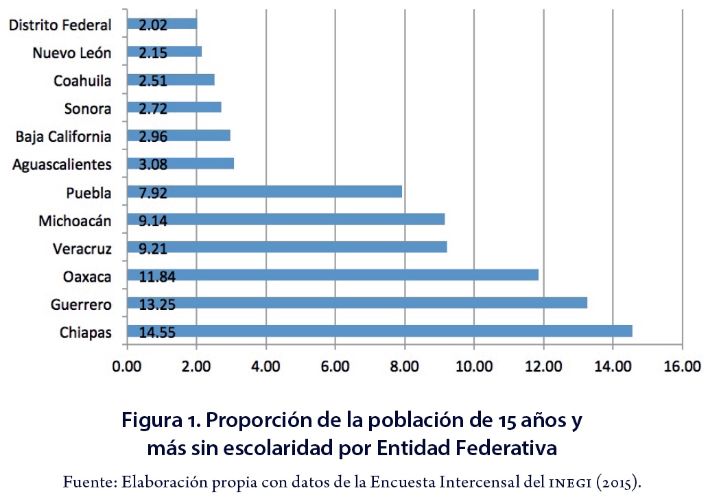 Figura 1. Proporción de la población de 15 años y más sin escolaridad por Entidad Federativa