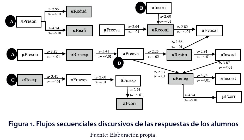 Figura 1. Flujos secuenciales discursivos de las respuestas de los alumnos