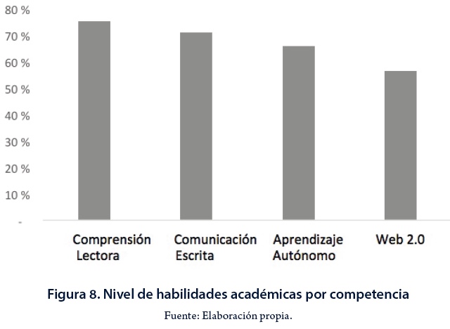 La Figura 8 muestra el nivel de habilidades académicas por competencia.