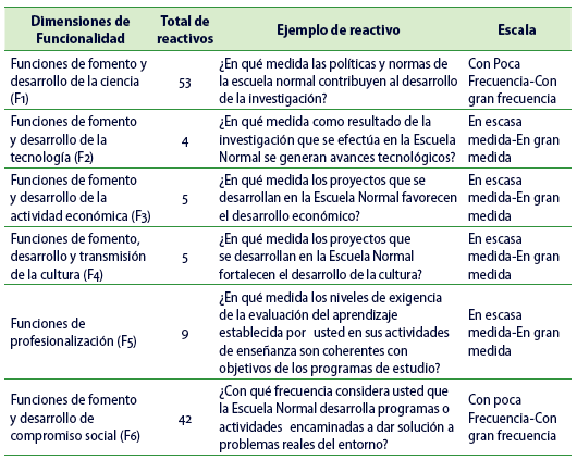 Nota: El cuestionario quedó conformado por 93 ítems que miden seis dimensiones de funcionalidad institucional después de haberlo modificado en función de las características de la escuela normal.