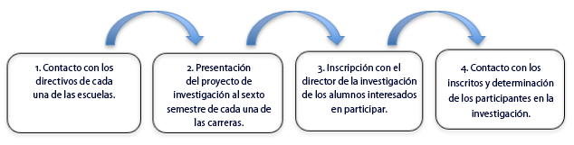 Los participantes son alumnos regulares de sexto semestre y se eligieron en respuesta a un muestreo no probabilístico y de participación voluntaria. La dinámica que guio este acercamiento se muestra en la Figura 1.