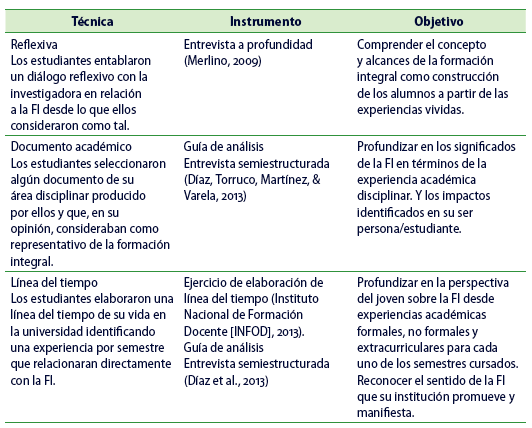 Van Manen (2003) considera la recolección de información a partir de técnicas que permitan profundizar en la comprensión de un fenómeno a estudiar. Las técnicas e instrumentos empleados para obtener la información se detallan en la Tabla 1.