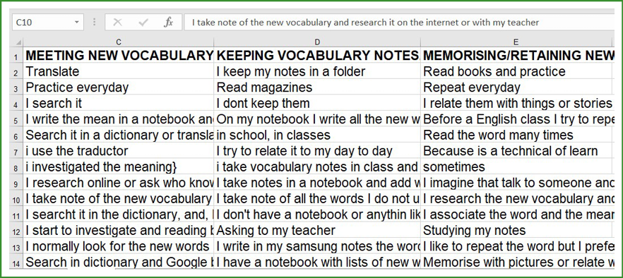 “When I’m at home, I have a notebook where I write the new words I learn, when I’m at other place, I type them on my phone.”