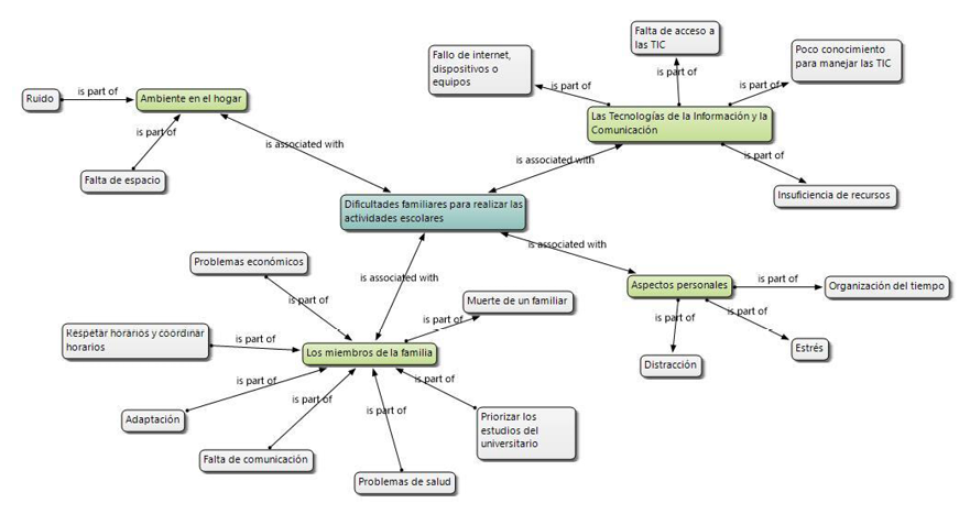 La segunda respuesta con mayor frecuencia consistió en que la conexión a Internet para las actividades no fue suficiente (n=25). De igual manera, estos datos son consistentes con el análisis de la respuesta abierta sobre las dificultades familiares para realizar las actividades.