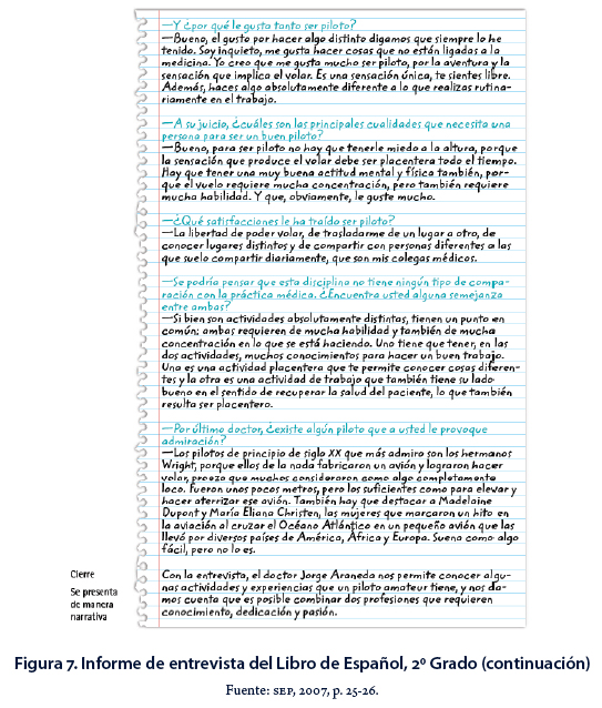 También decidimos incorporar una imagen del texto modelo de informe de entrevista propuesto por el libro de Español, ya que los estudiantes apoyan su redacción en este ejemplo (Figuras 6 y 7).